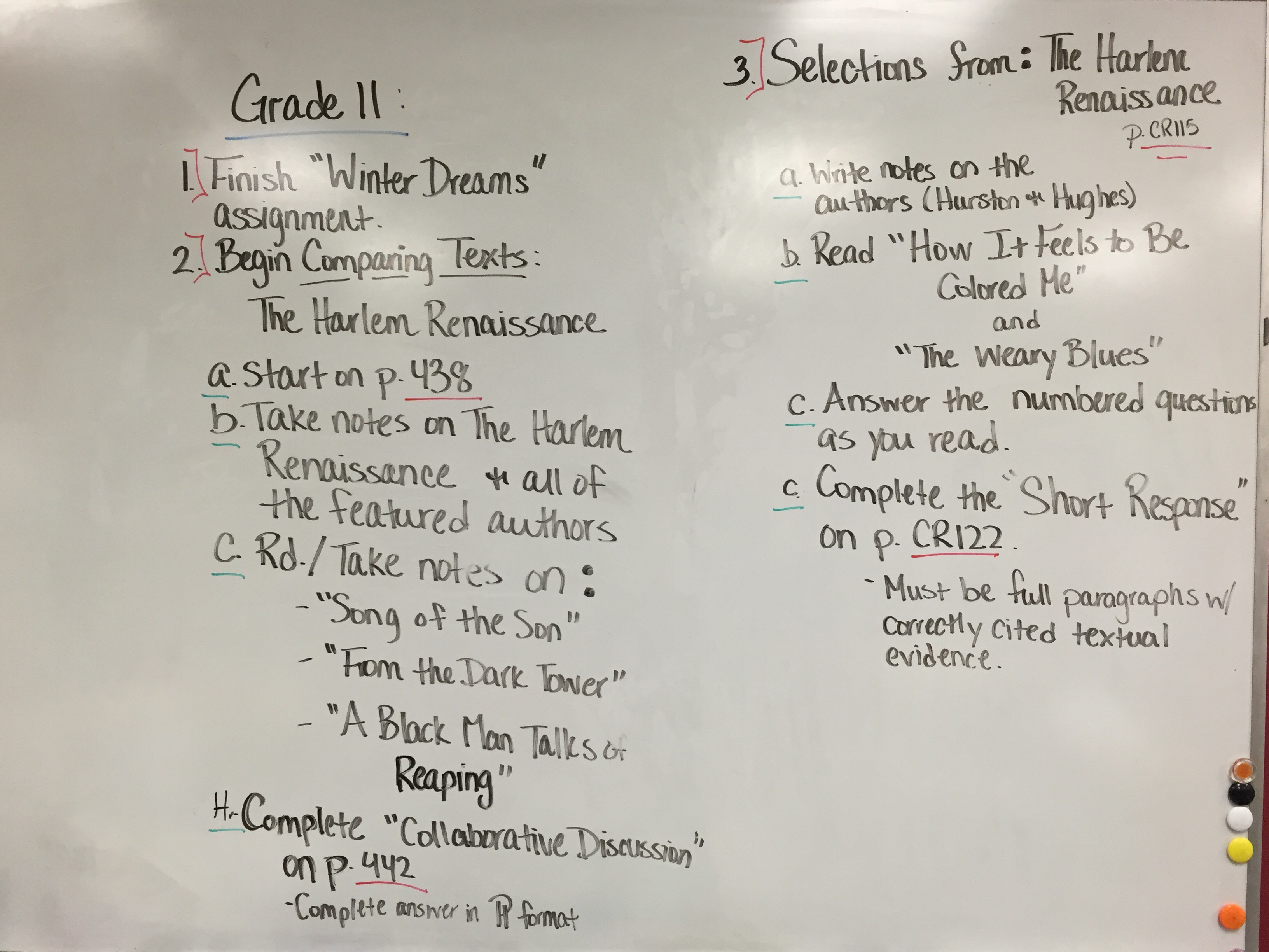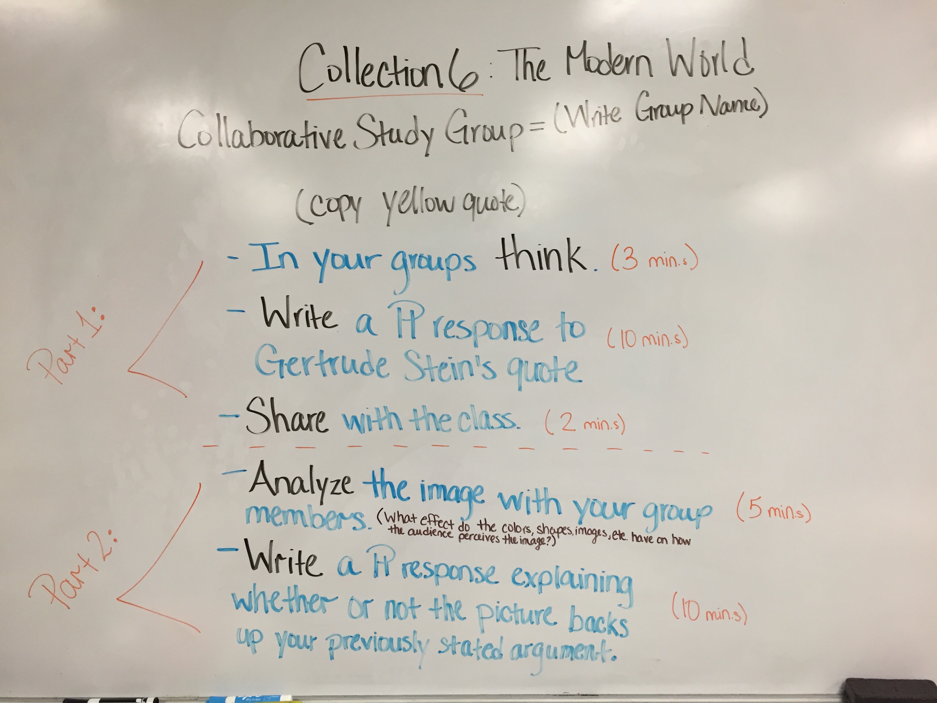 Scroll to see the daily assignments we will complete in Collection 6. If you are absent, please refer to this page for guidance.