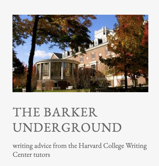 I often like to click into Harvard College Writing Center’s blog The Barker Underground. It’s created by the center’s tutors and always includes a quick tip you can use on the run.