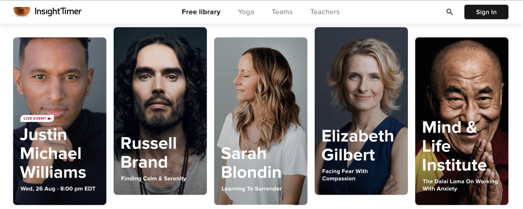 This app is my personal favorite! The app is separated into nine categories: timed, guided, courses, sleep, music, parents, beginners, talks, and daily. There’s a little bit of something for everyone and their live events help me feel more connected to people around the world experiencing similar difficult moments or emotions. They have playlists that help you focus while you’re studying, and the site itself is really interactive. Check it out!