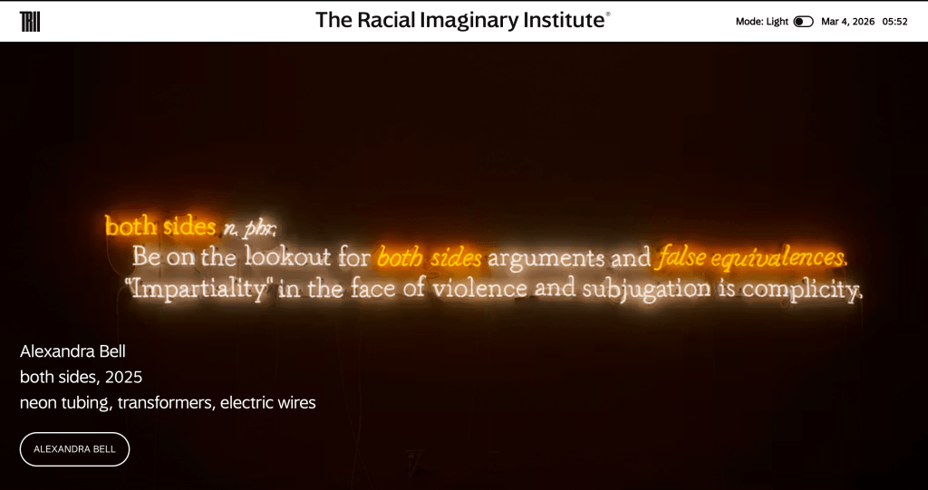 Co-founded by Claudia Rankine in 2016, The Racial Imaginary Institute (TRII) describes itself as “An Interdisciplinary Cultural Laboratory.” Below, you’ll find a quick link to the site, which we will explore at length this year. Let’s learn to read between the lines.